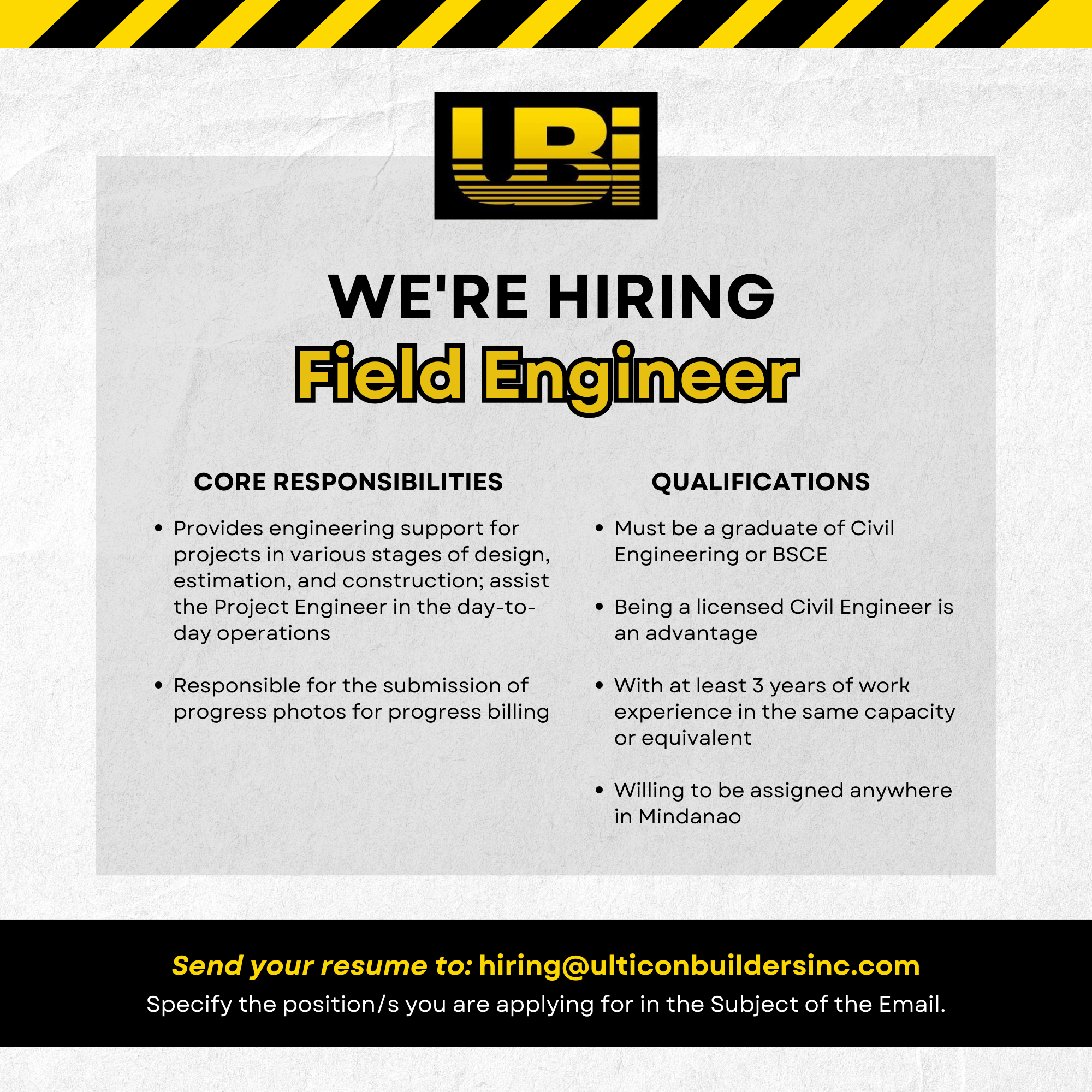 HIRING 📣 Send your resumé to hiring@ulticonbuildersinc.com. Specify the position/s you are applying for.