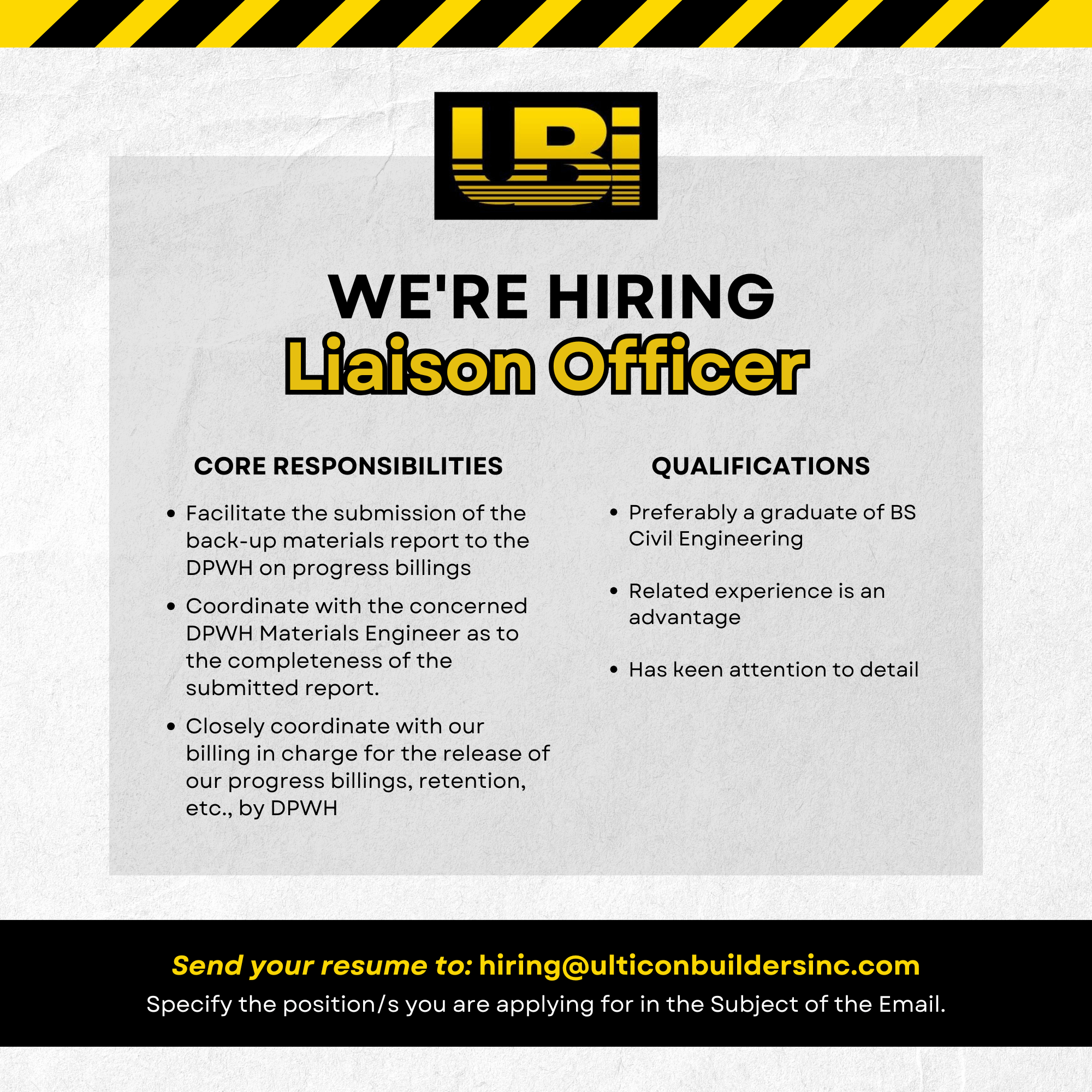 HIRING 📣 Send your resumé to hiring@ulticonbuildersinc.com. Specify the position/s you are applying for.