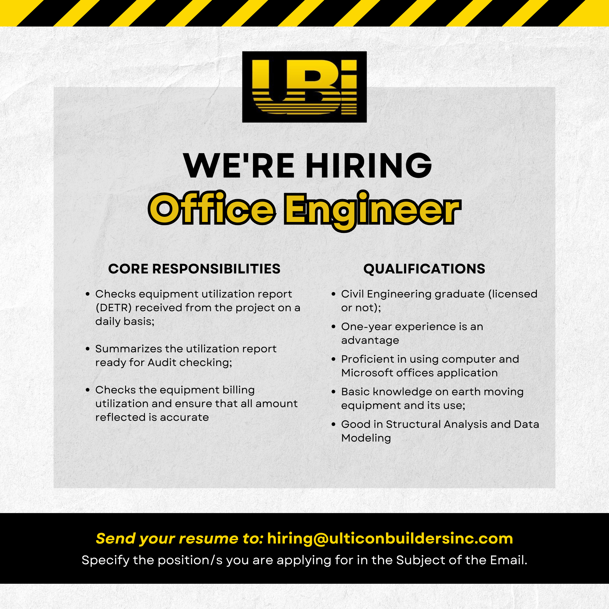 HIRING 📣 Send your resumé to hiring@ulticonbuildersinc.com. Specify the position/s you are applying for.